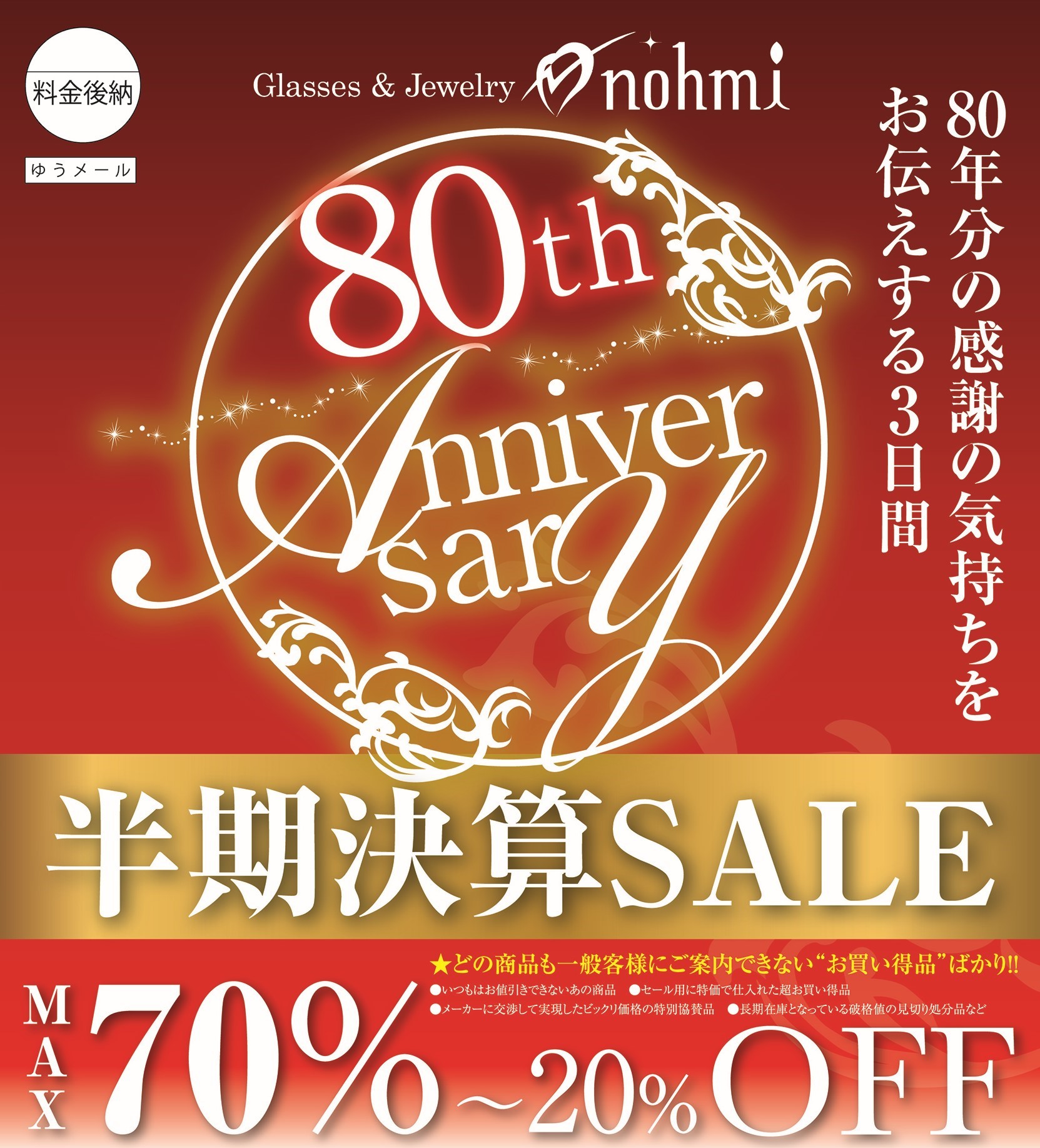 創業80周年 半期決算セールのお知らせ